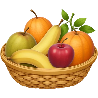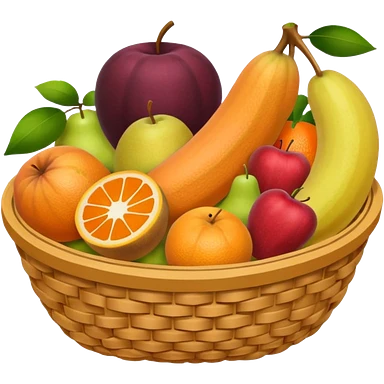 A brown basket of fruits with some pink aesthetic motives on the basket in an ios 18 emoji emoji