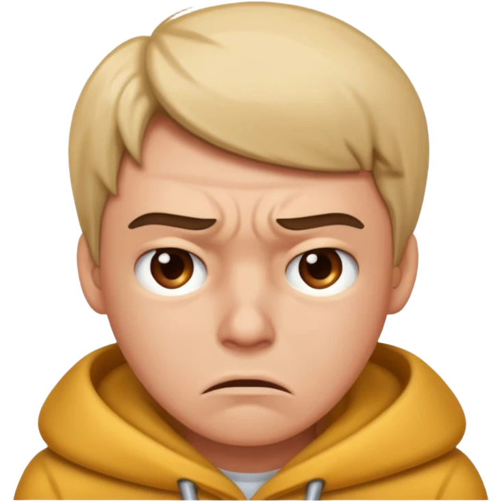 frustrated amateur painter emoji wearing dirty oversized clothes with paint stains, no protective gear, holding a broken brush, paint splatters on face and hands, messy room emoji