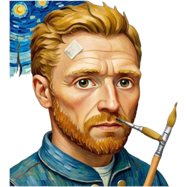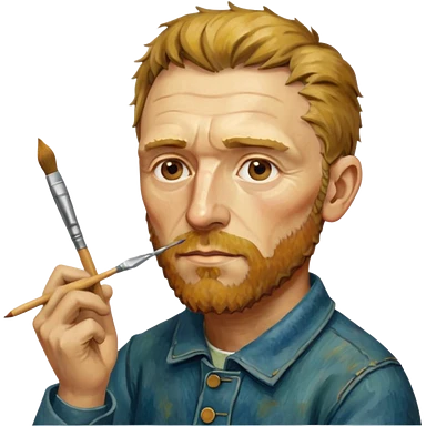 an gogh paints on a canvas. On his right ear he has a bandage emoji