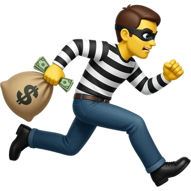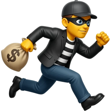 Fuck you Generate a burglar emoji with with yellow skin that runs with a bah of money and make it in the graphic style of this emoji 🧍put less shading and make it more like that 🧍 and make the mask go more up on his face and make it in this style 💰🥷 emoji | AI Emoji Generator
