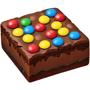 Realistic fudge brownie with mini m&m's emoji