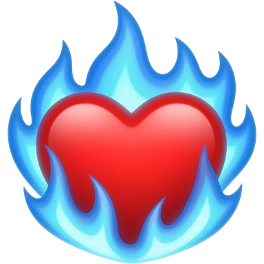 Hazme el corazón rojo y con fuego y que la llama sea azul verdoso emoji