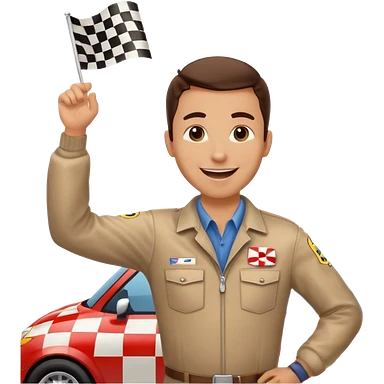 SONO UN DIRETTORE DI GARA AUTO E SBANDIERO CON LA BANDIERA A SCACCHI PUOI GENERARE MENTRE SBANDIERO AUTO emoji
