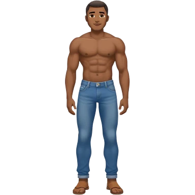 full body african man showing off his lower-body features. topless and bottomless. detailed shading. smug face. handsome features emoji | AI Emoji Generator