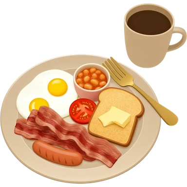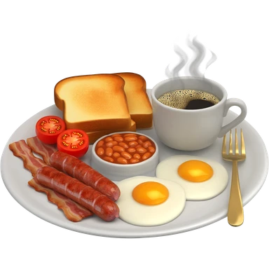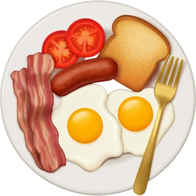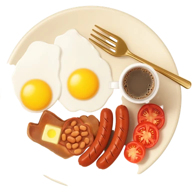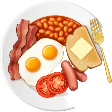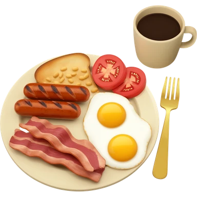 full English breakfast with eggs, bacon, sausage, beans, toast, and tomato emoji