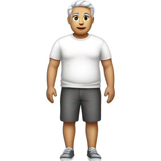 Full body Fat man grey hair in white t-shirt emoji | AI Emoji Generator