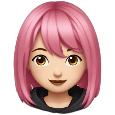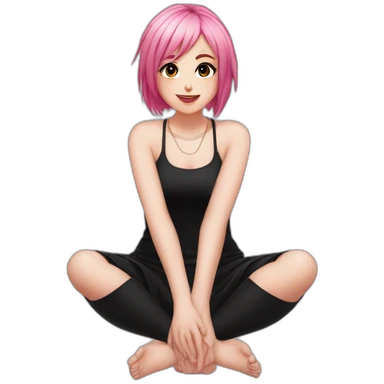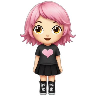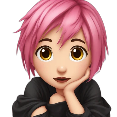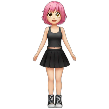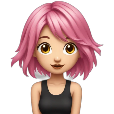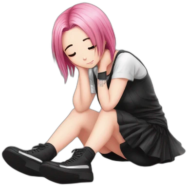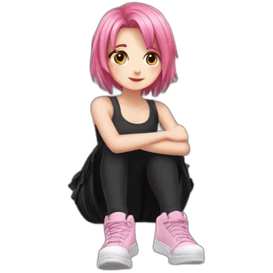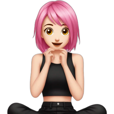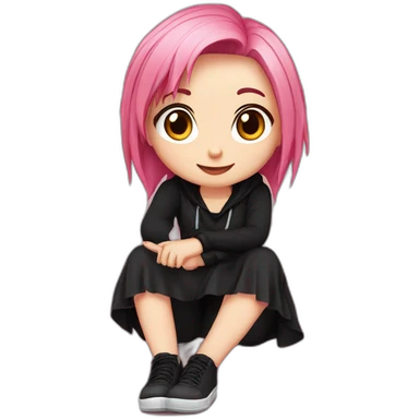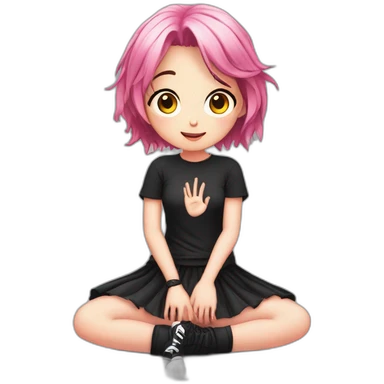 Full body Front view curvy emo girl pink hair sits on the floor straight view hands up black skirt белые трусики полосатые рваные чулки emoji | AI Emoji Generator