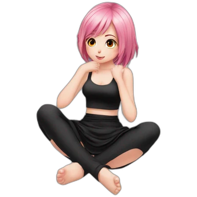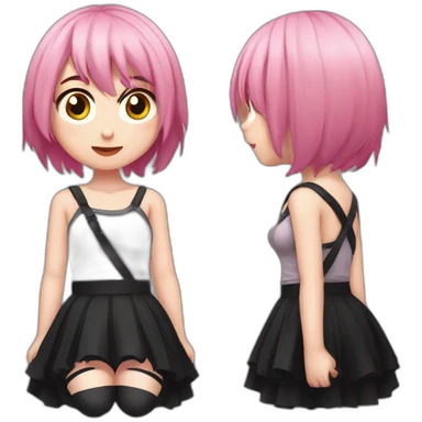 Full body Front view curvy emo girl pink hair sits on the floor straight view hands up black skirt белые трусики emoji