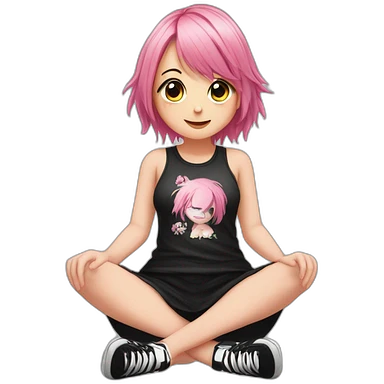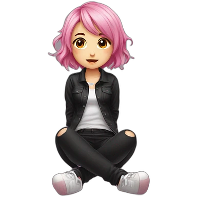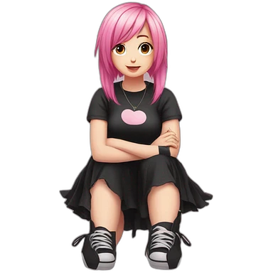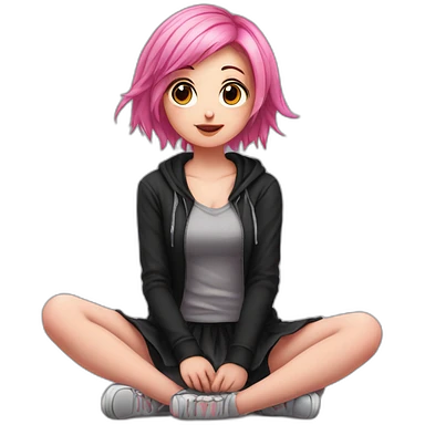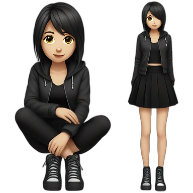 full body Front view emo girl sits on the floor black skirt emoji