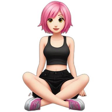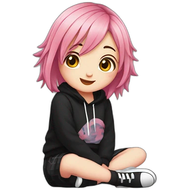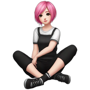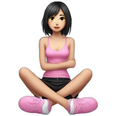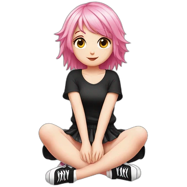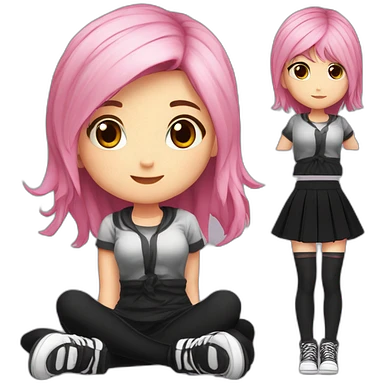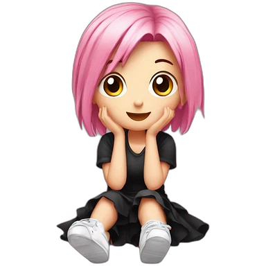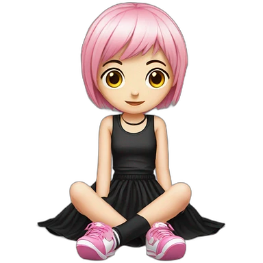 full body Front view emogirl sits on the floor black skirt emoji | AI Emoji Generator