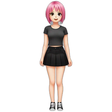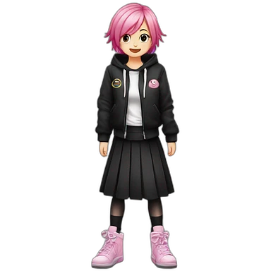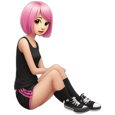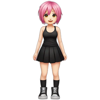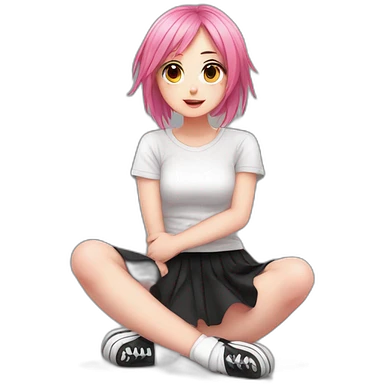 full body Front view emo girl sits on the floor black skirt pink knickers emoji