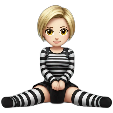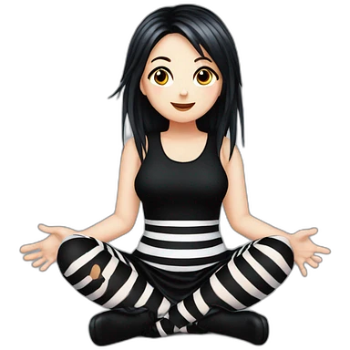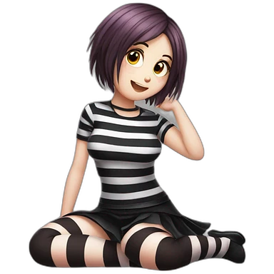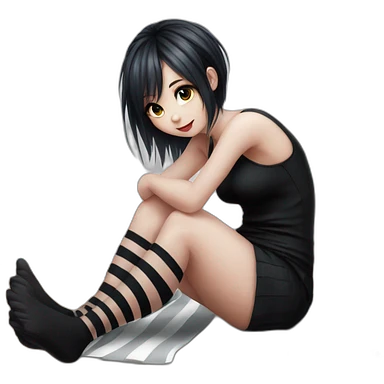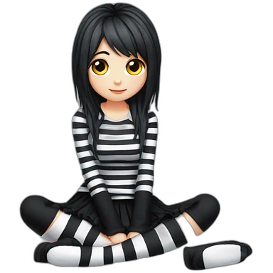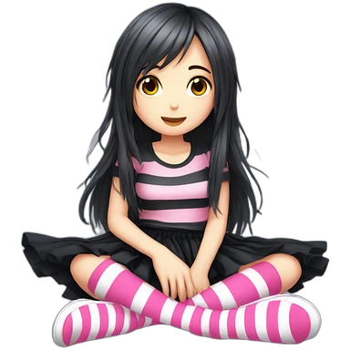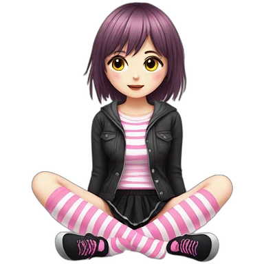 full body Front view emo girl sits on the floor black skirt torn striped stockings emoji
