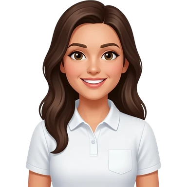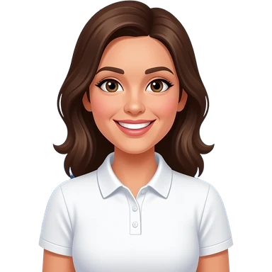 female community Manager, white halfsleeve polo shirt, smiling, add event background emoji