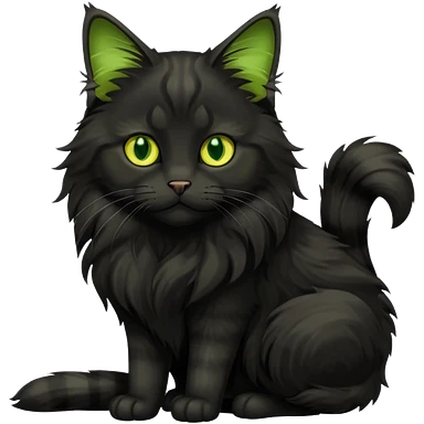Black only maincoon cat green eyes full body emoji