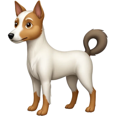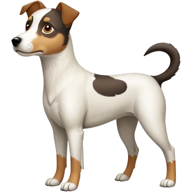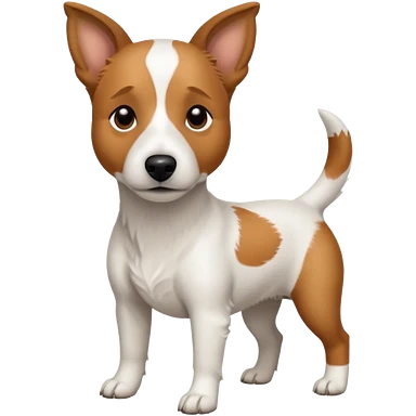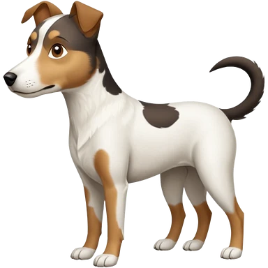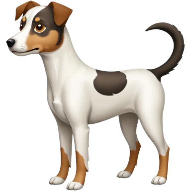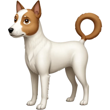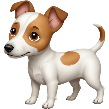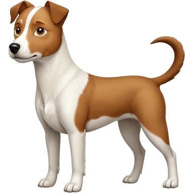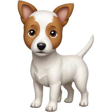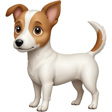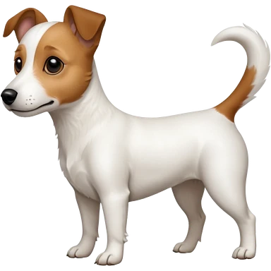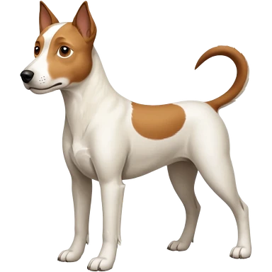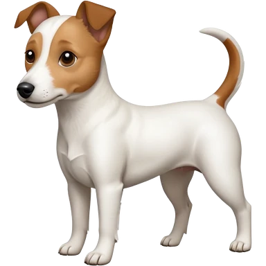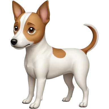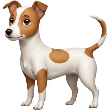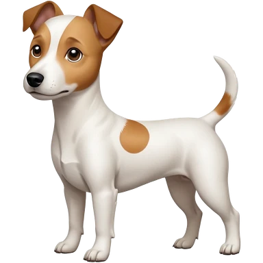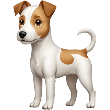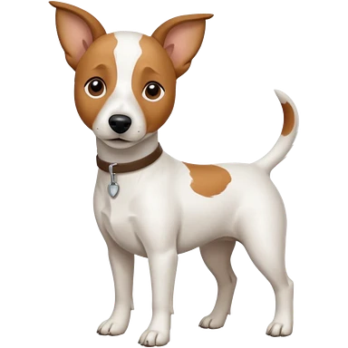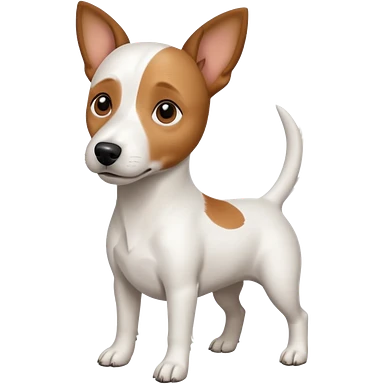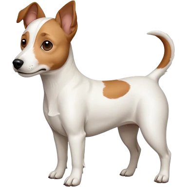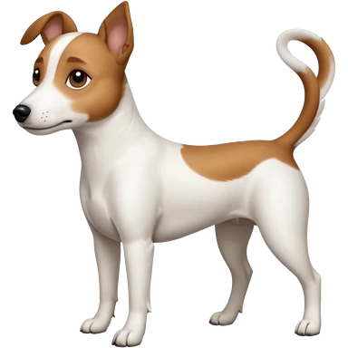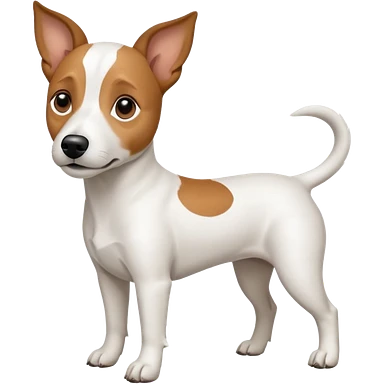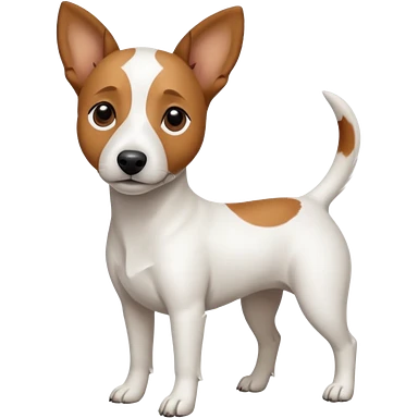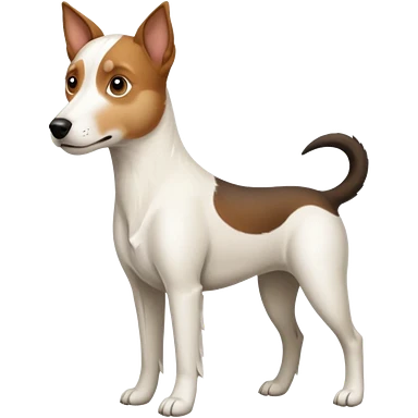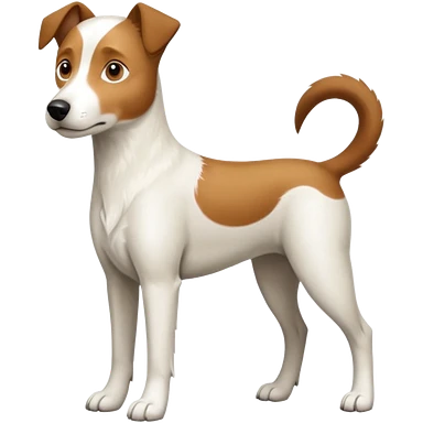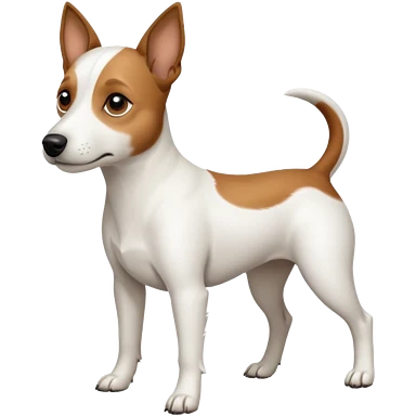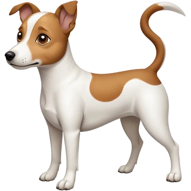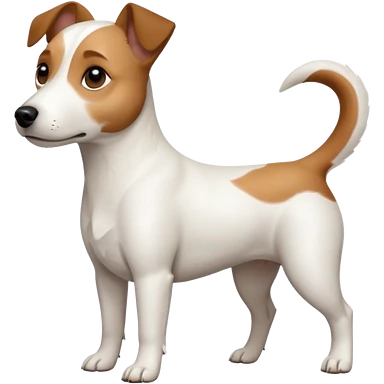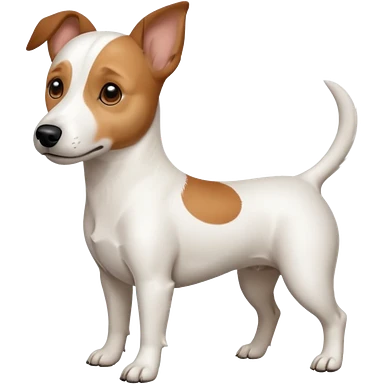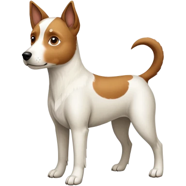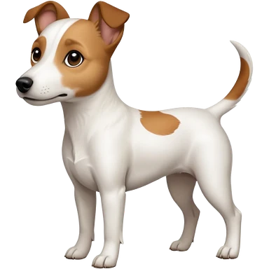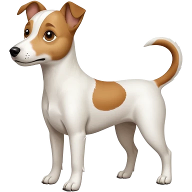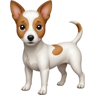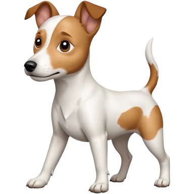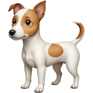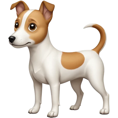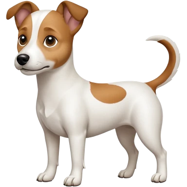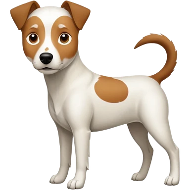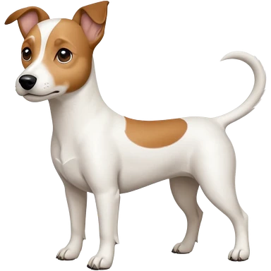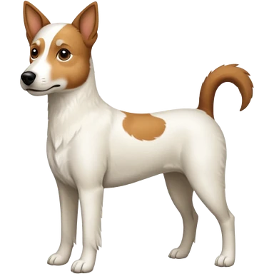 a full body white jack russel looking dog the size of a kelpie with light brown ears and a light brown patch on one eye, flopped down ears and a large snout emoji