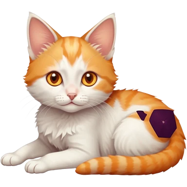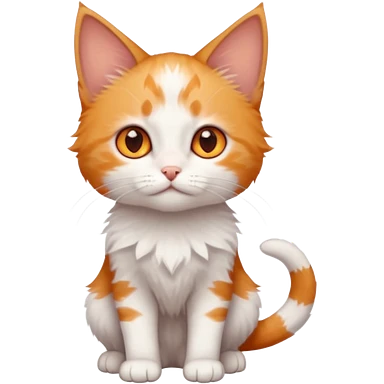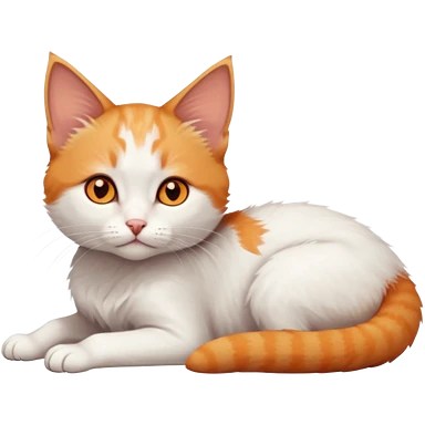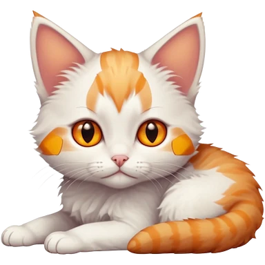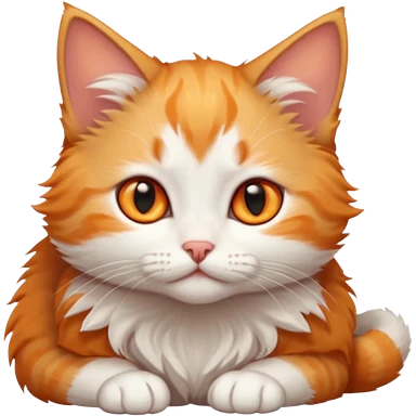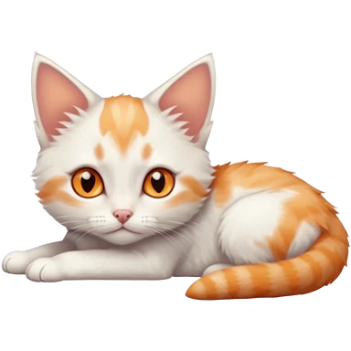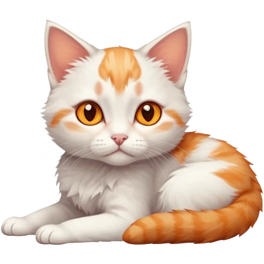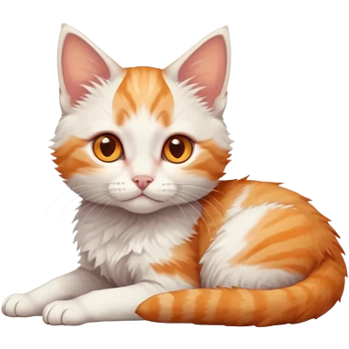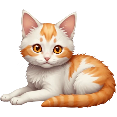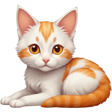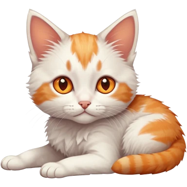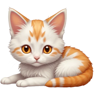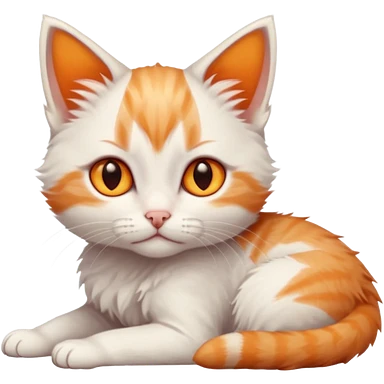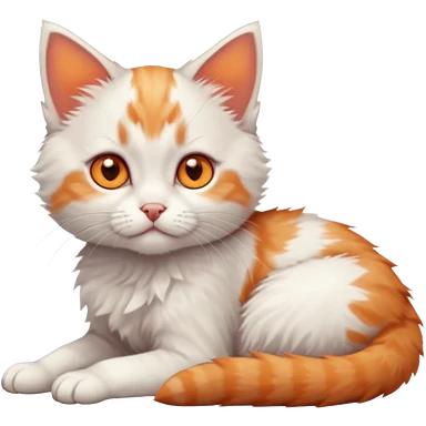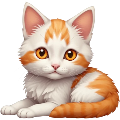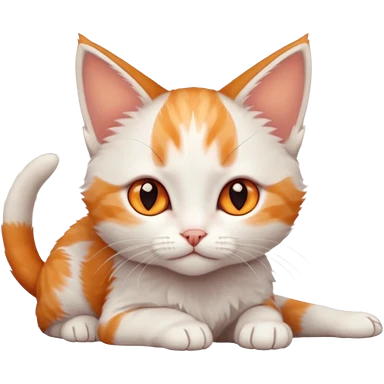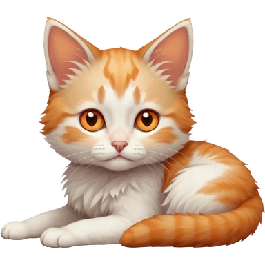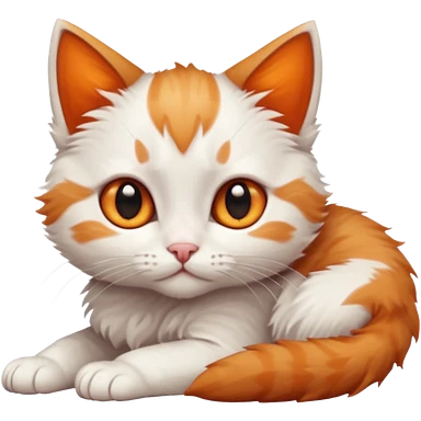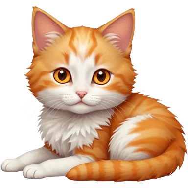 full body of very small + skinny ginger and white kitten with deep orange eyes and triangular shaped face lying down cuddling a grey and white kitten who is a bit bigger than him emoji | AI Emoji Generator