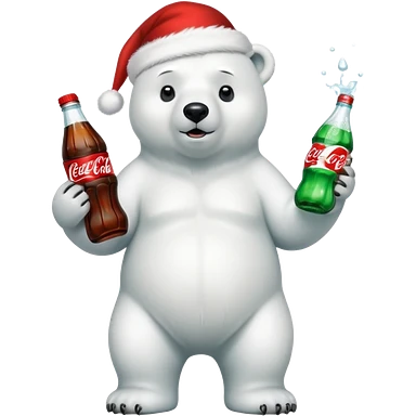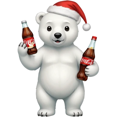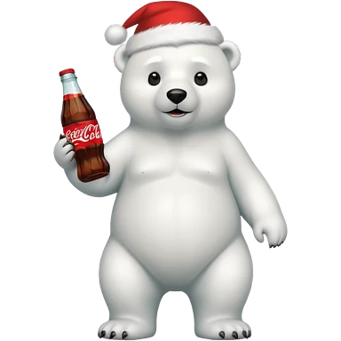full body polar bear with christmas hat on with a bottle of coca cola emoji | AI Emoji Generator