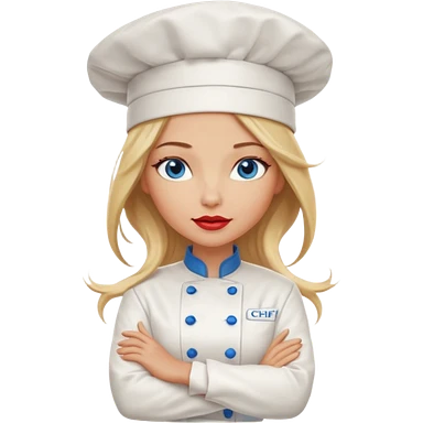 Full body Sexy Long Blonde hair blue eyed female chef arms folded emoji | AI Emoji Generator