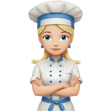 Full body Sexy Long Blonde hair blue eyed female chef arms folded emoji
