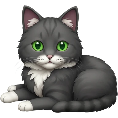 full body solid dark grey cat with green eyes and white paws and white whiskers emoji | AI Emoji Generator