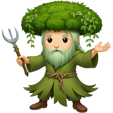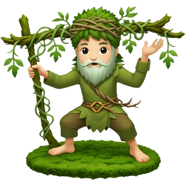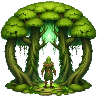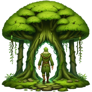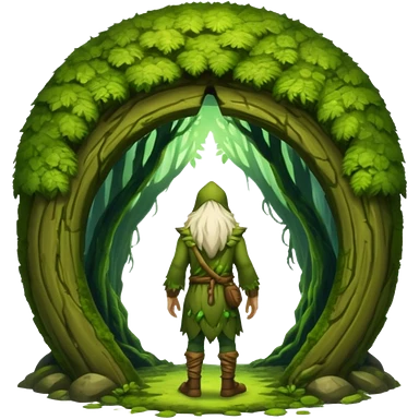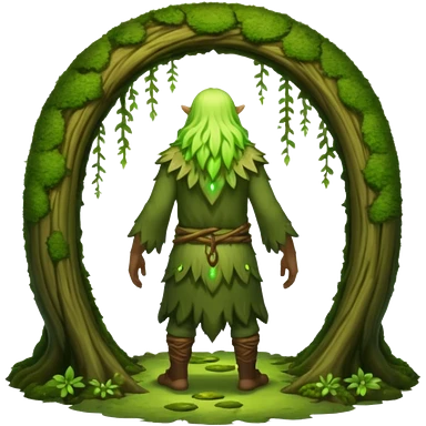 full body moss druid man, from behind walking into glowing forest portal emoji