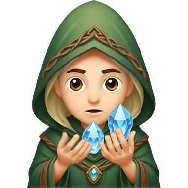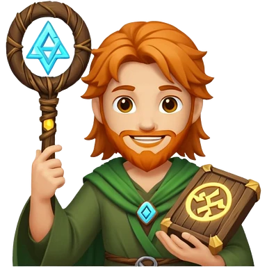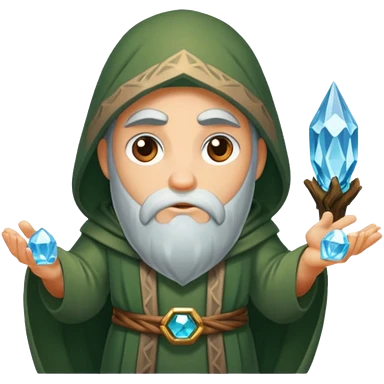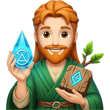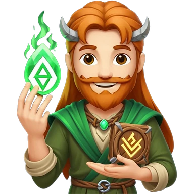 full body man long brown hair brown eyes medium beard white skin wearing stag hat and forest druid robes open chest emoji