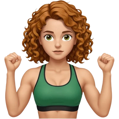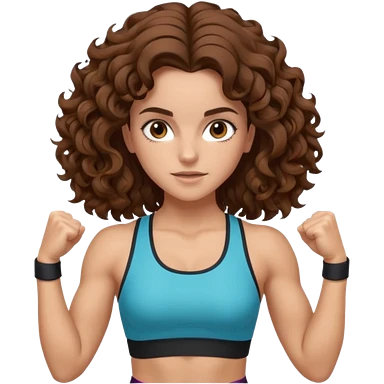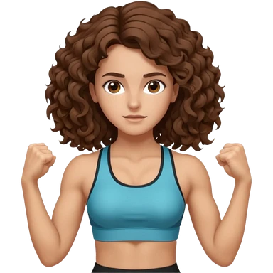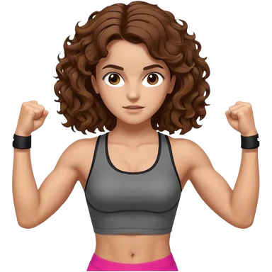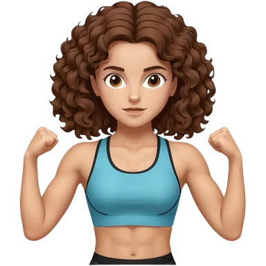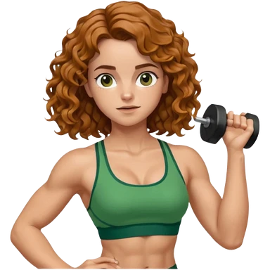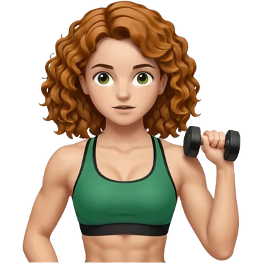 full body, very beautiful italian girl, dark brown eyes, looking like Emma Watson, with curly and big volume very bright brown hair, and a golden piercing ring in nose on left side, pumping dumbbells