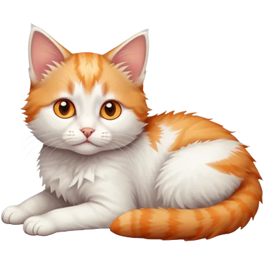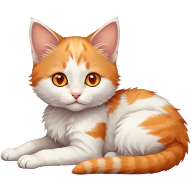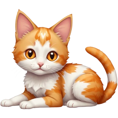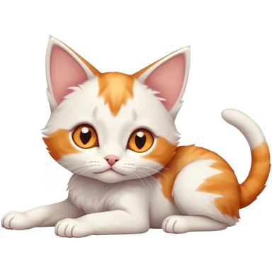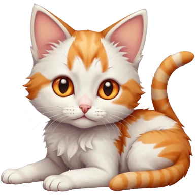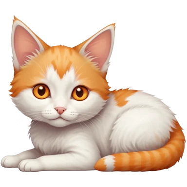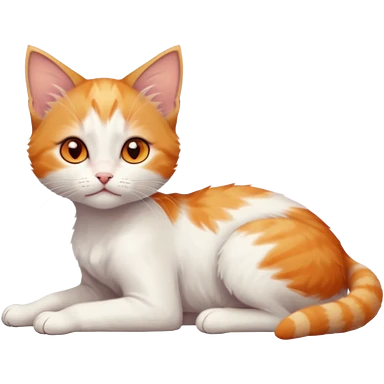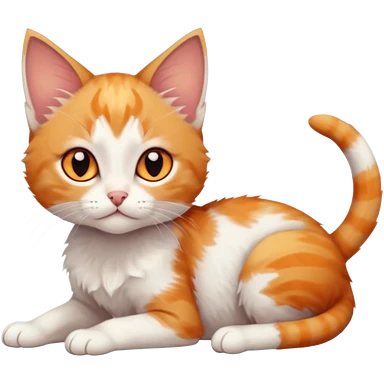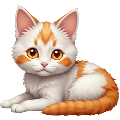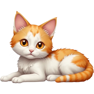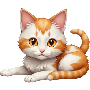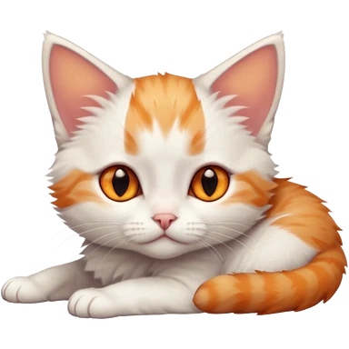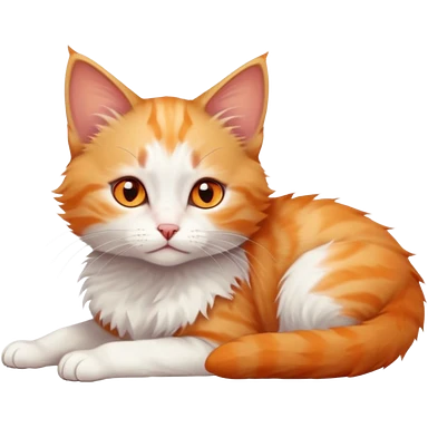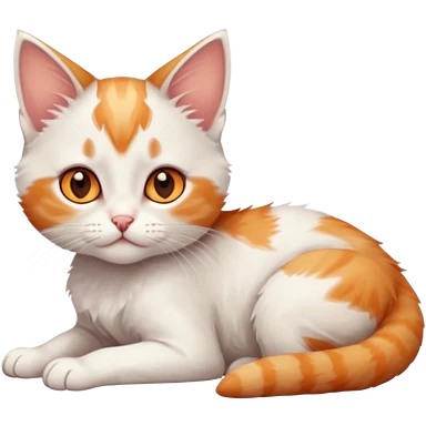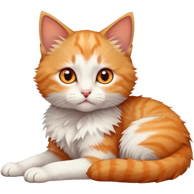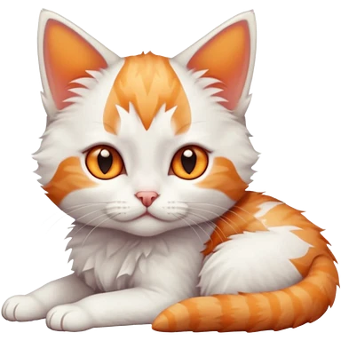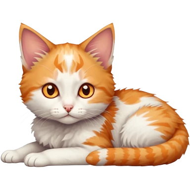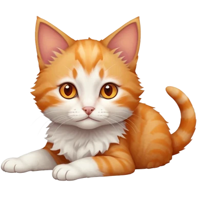 full body of very small + skinny ginger and white kitten with deep orange eyes and triangular shaped face lying down emoji