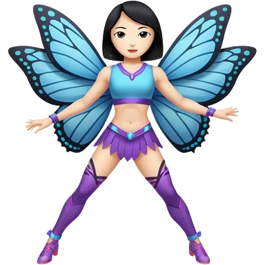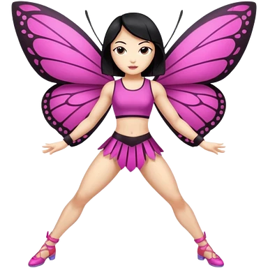 full body east asian woman black hair bob muscular build butterfly blade dancer emoji