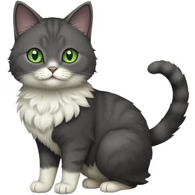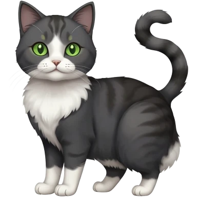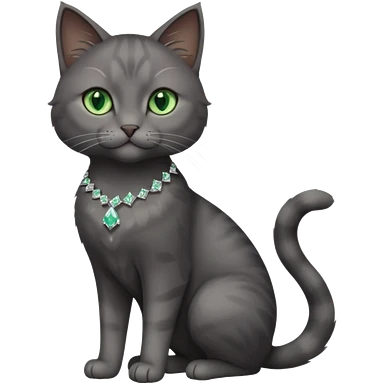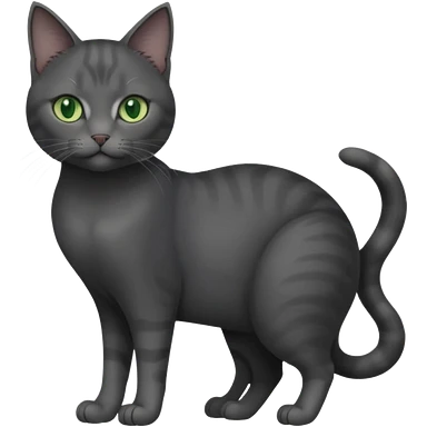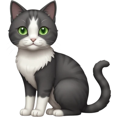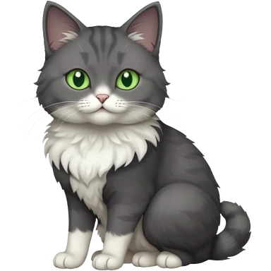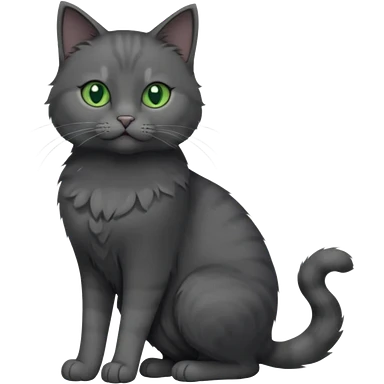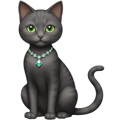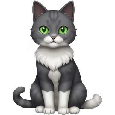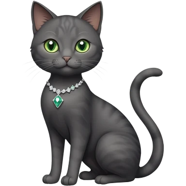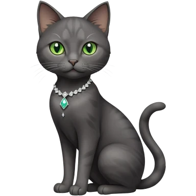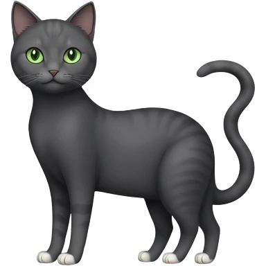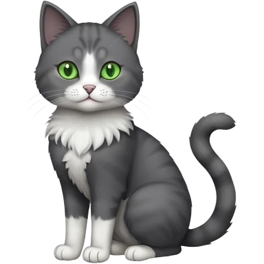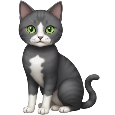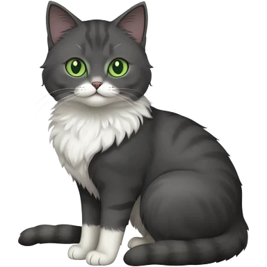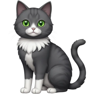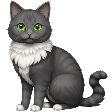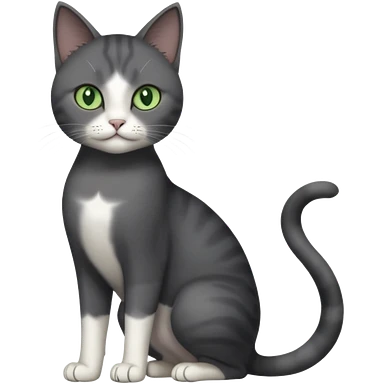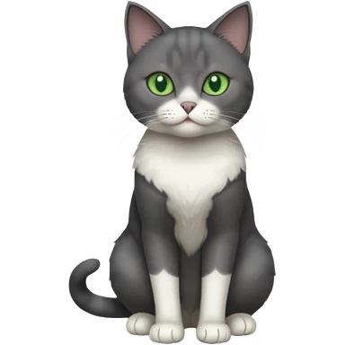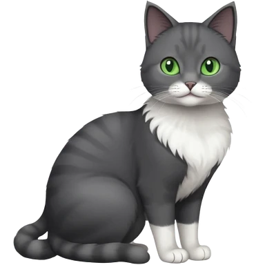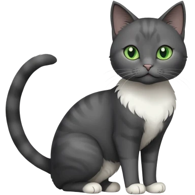 full body view of beautiful female dark grey cat with green eyes, white toes and white diamond on chest emoji