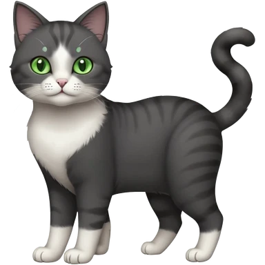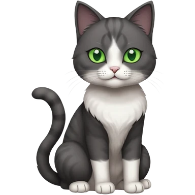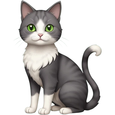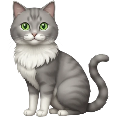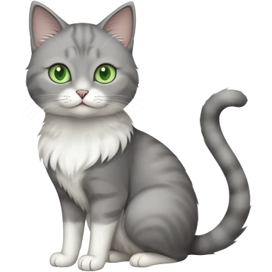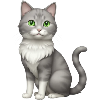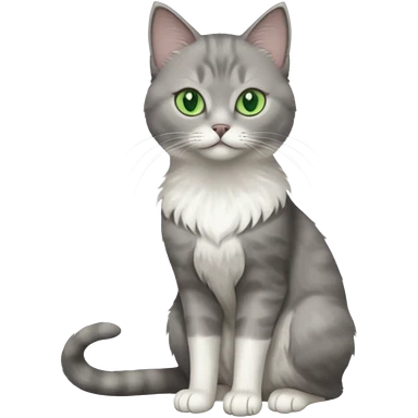 full body view of beautiful female grey cat with green eyes, white paws and white chest emoji | AI Emoji Generator