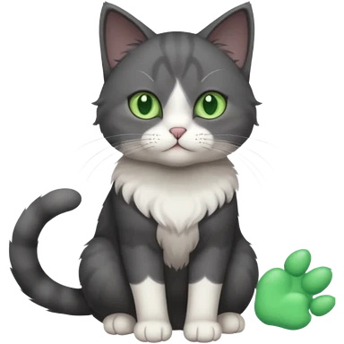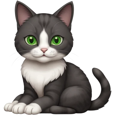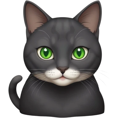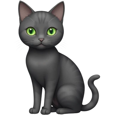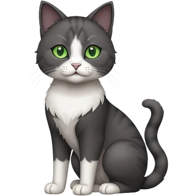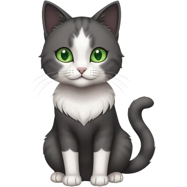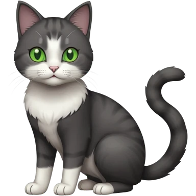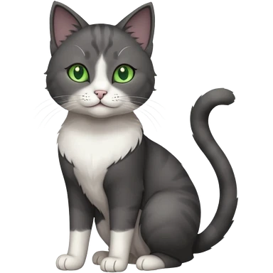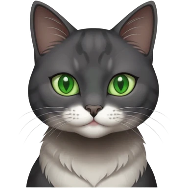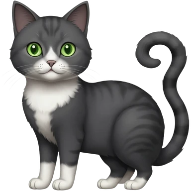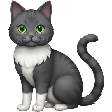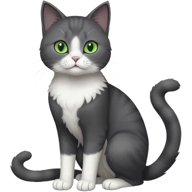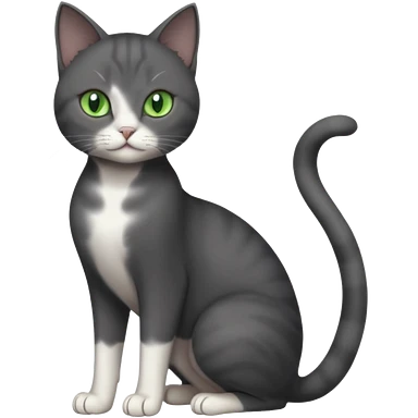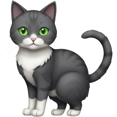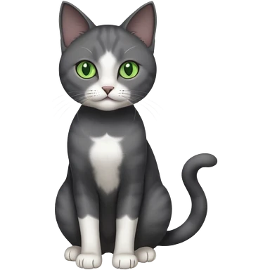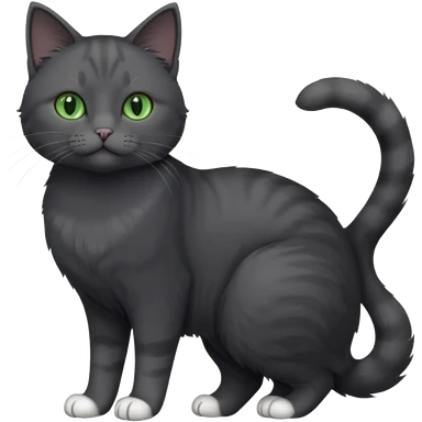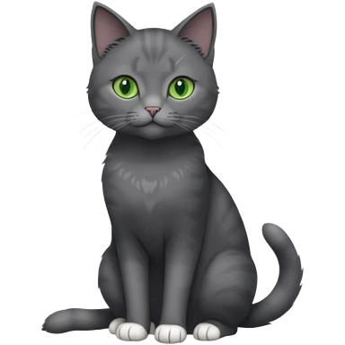 full body view of beautiful female dark grey cat with green eyes, white toes and white patch on chest emoji