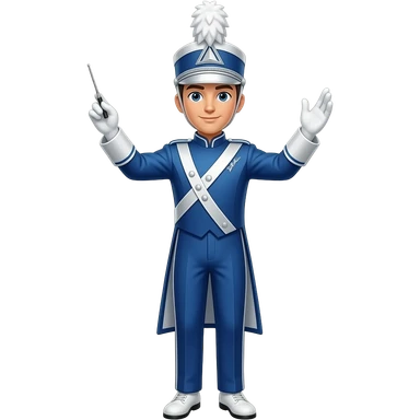 full body of white drum major in blue silver and white outfit conducting emoji