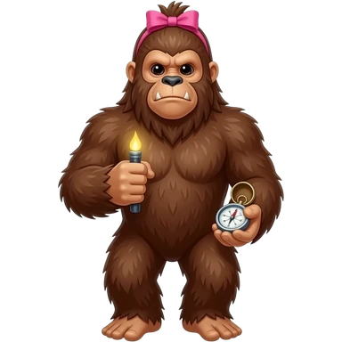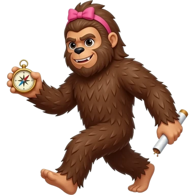 Full body walking sasquatch with pink bow in hair holding a compass in 1 hand and nothing in the other emoji | AI Emoji Generator