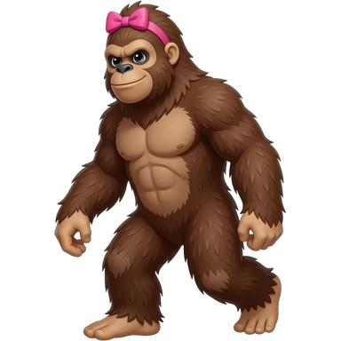 Full body walking sasquatch with bow in hair emoji