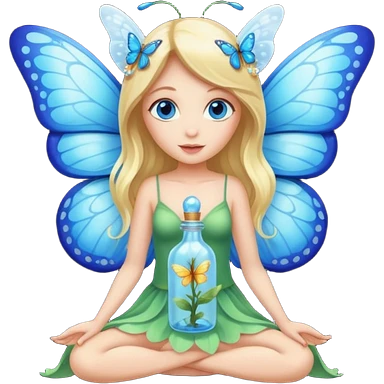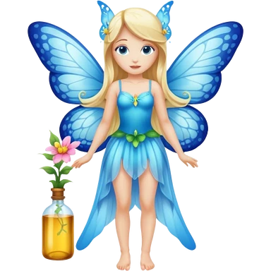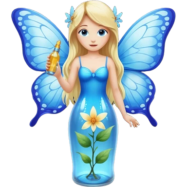 full body woman long blonde hair blue eyes white skin butterfly fairy wings and nectar bottle emoji