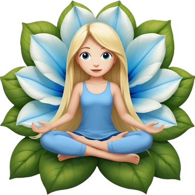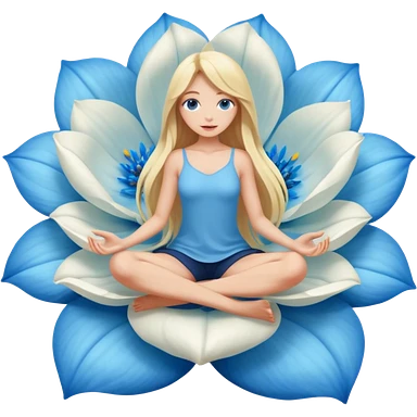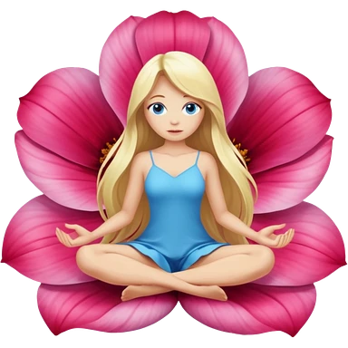 full body woman long blonde hair blue eyes white skin sitting inside giant flower bloom emoji