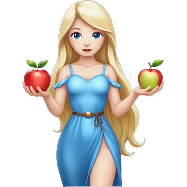 full body woman long blonde hair blue eyes white skin holding glowing apple like forbidden fruit emoji