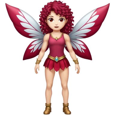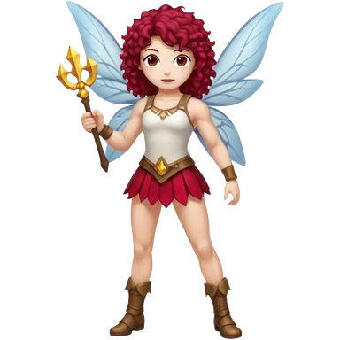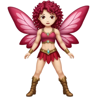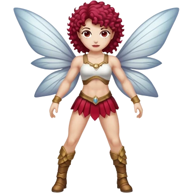 full body woman short curly brown mullet brown eyes white skin muscular build cranberry battle fairy emoji