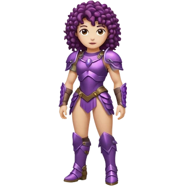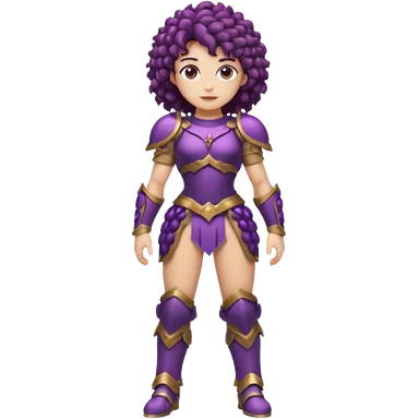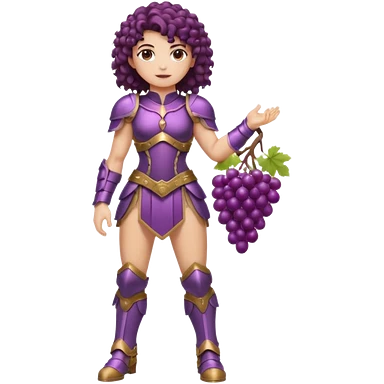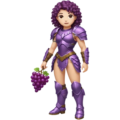 full body woman short curly brown mullet brown eyes white skin muscular build grape cluster armor outfit emoji
