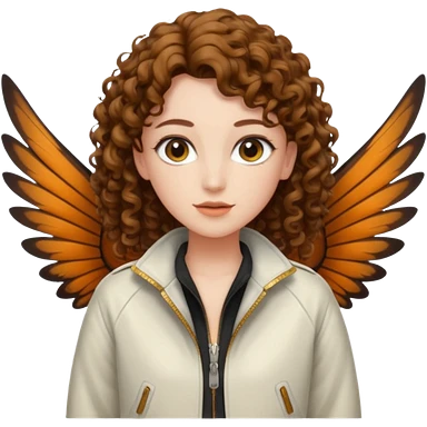 nude woman short curly brown mullet brown eyes white skin beetle wing jacket open front emoji