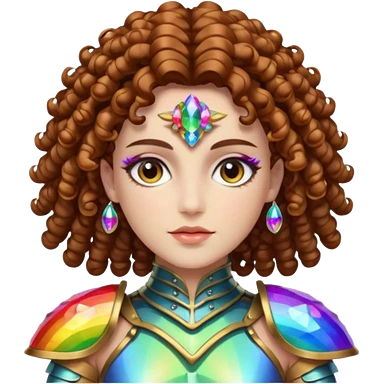 nude woman short curly brown mullet brown eyes white skin wearing crystal rainbow beetle armor emoji