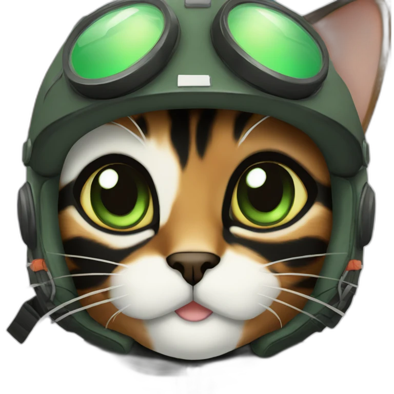 full brown and black calico cat with green eyes dressed as a pilot emoji | AI Emoji Generator