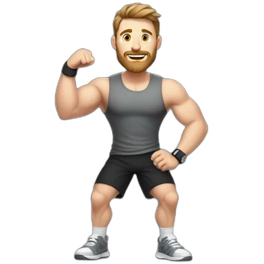 Full height Pale skinned fit man With biceps and brown Short Tousled hair In dark gray sleeveless mike, black oversize sports shorts, watch and white sneakers. his arms crossed over his chest emoji | AI Emoji Generator