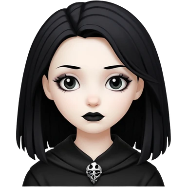full length girl in a black coat and goth black boots, glasses, blue eyes, white skin, curly black long hair and aristocratic high cheekbones emoji | AI Emoji Generator