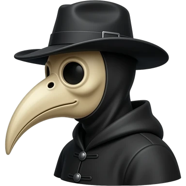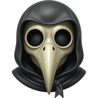 Morbid medieval plague doctor mask with a wide, sinister smile, visible in the empty eye sockets a tiny glow. Clean, stylized lines, flat vector illustration suitable for a small emote. Stylized as a medieval woodcut or metal engraving. Black and white with one accent color emoji