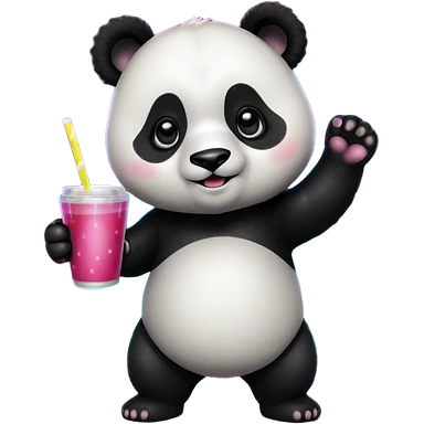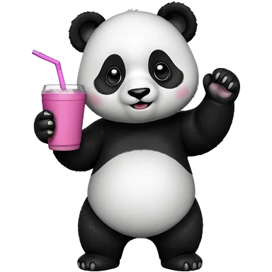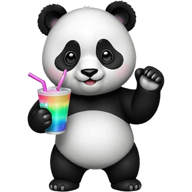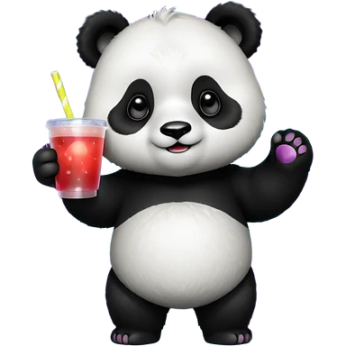 A full body of panda holding a cup of punch, looking excited under disco lights. emoji
