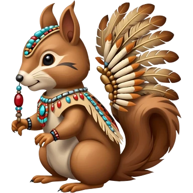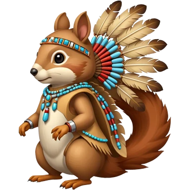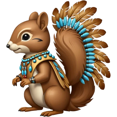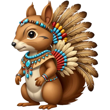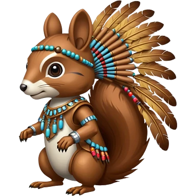 Full body Robotic squirrel wearing native American regalia with feathers and beads emoji