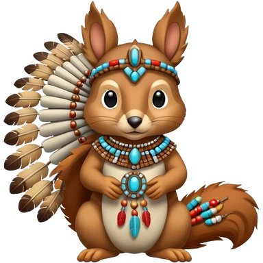 Full Robotic squirrel wearing native American regalia with feathers and beads emoji | AI Emoji Generator
