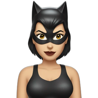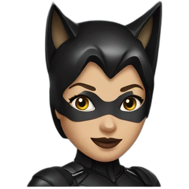 full size real-appearance road glowing racing sexy buxom CatWoman’s feminine midnight-colored tight outfit sixty’s tv show dark stealthy accurate sporty safe plush deluxe off-road pursuit drifting car jaguar (black hair,reclined and relaxed torso and shoulders back seating position) cross kart emoji | AI Emoji Generator